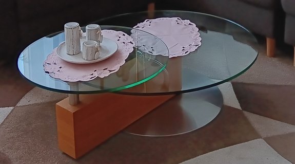 Verschenke Glastisch mit zwei runden Platten. Er hat eine Länge von ca 110cm. Die kleine Platte kann mann drehen so das man auf eine Länge von ca,137 kommt.